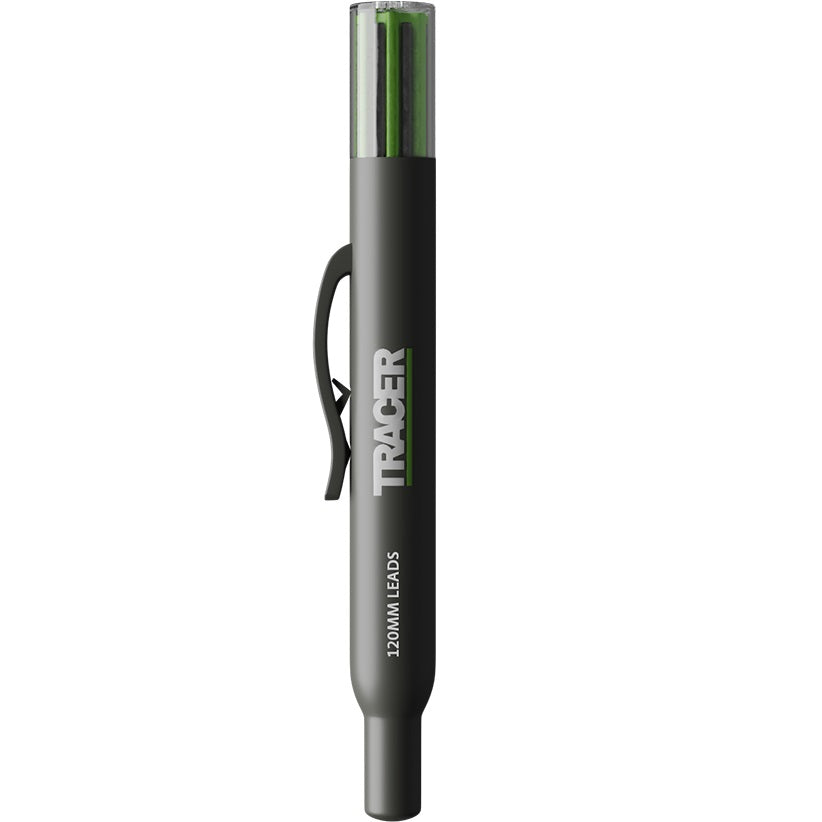 Acer Tracer six 120mm replacement leads with site holster. 4 x 2B graphite leads for clear dark lines and 2 x yellow wax leads for darker surfaces.
