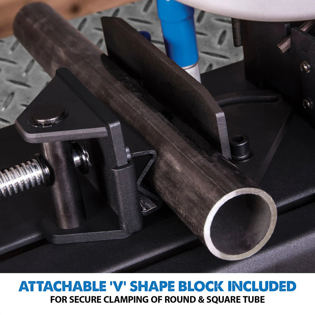 - Attachable ‘v’ shape block included for secure clamping of round & square tube