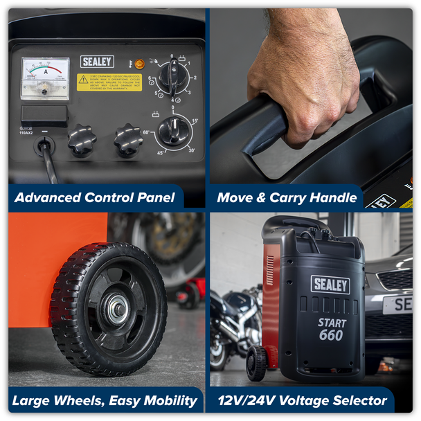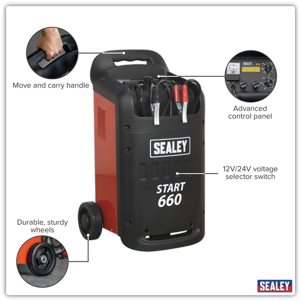 Buy Sealey START660 Starter/Charger 660/100Amp 12/24V 230V online now from DW Toolshop, one of the UK and Irelands largest tool shops
