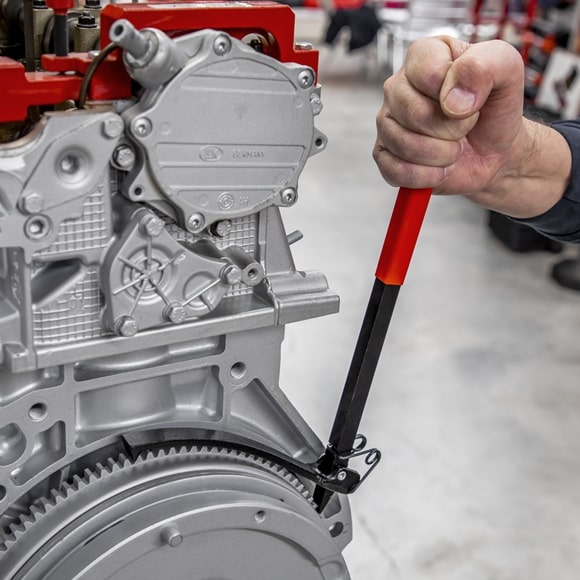 The Sealey VS175 Flywheel Turning Wrench, locates in starter ring gear teeth. Features spring loaded catch for ease of use.