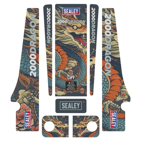 The Sealey 2000CW Low Entry Custom Design Trolley Jack is supplied with six full sets of interchangeable graphics.