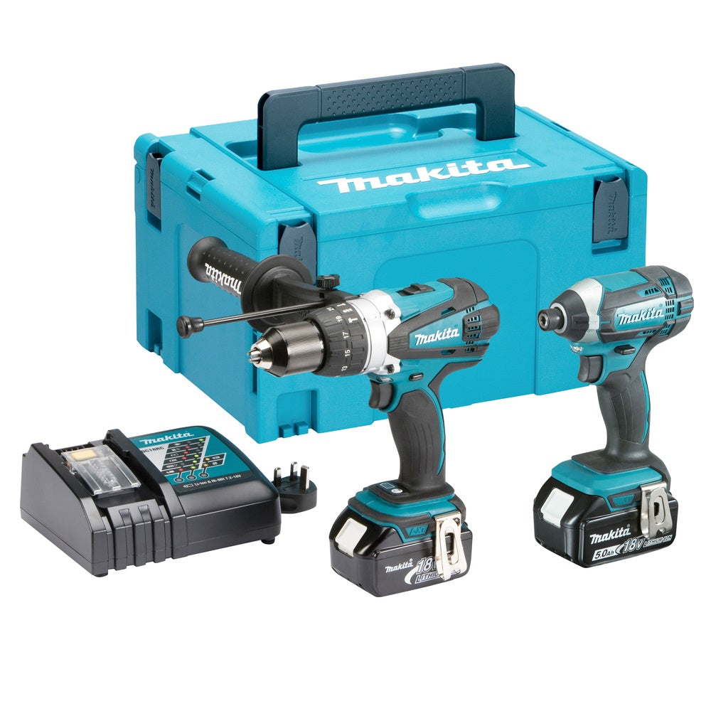 Buy Makita DLX2145TJ 18v Twin Pack - DHP458, DTD152 Impact Driver, 2 x 5.0ah + Charger + Case online now from DW Toolshop, one of the UK and Irelands largest tool shops.